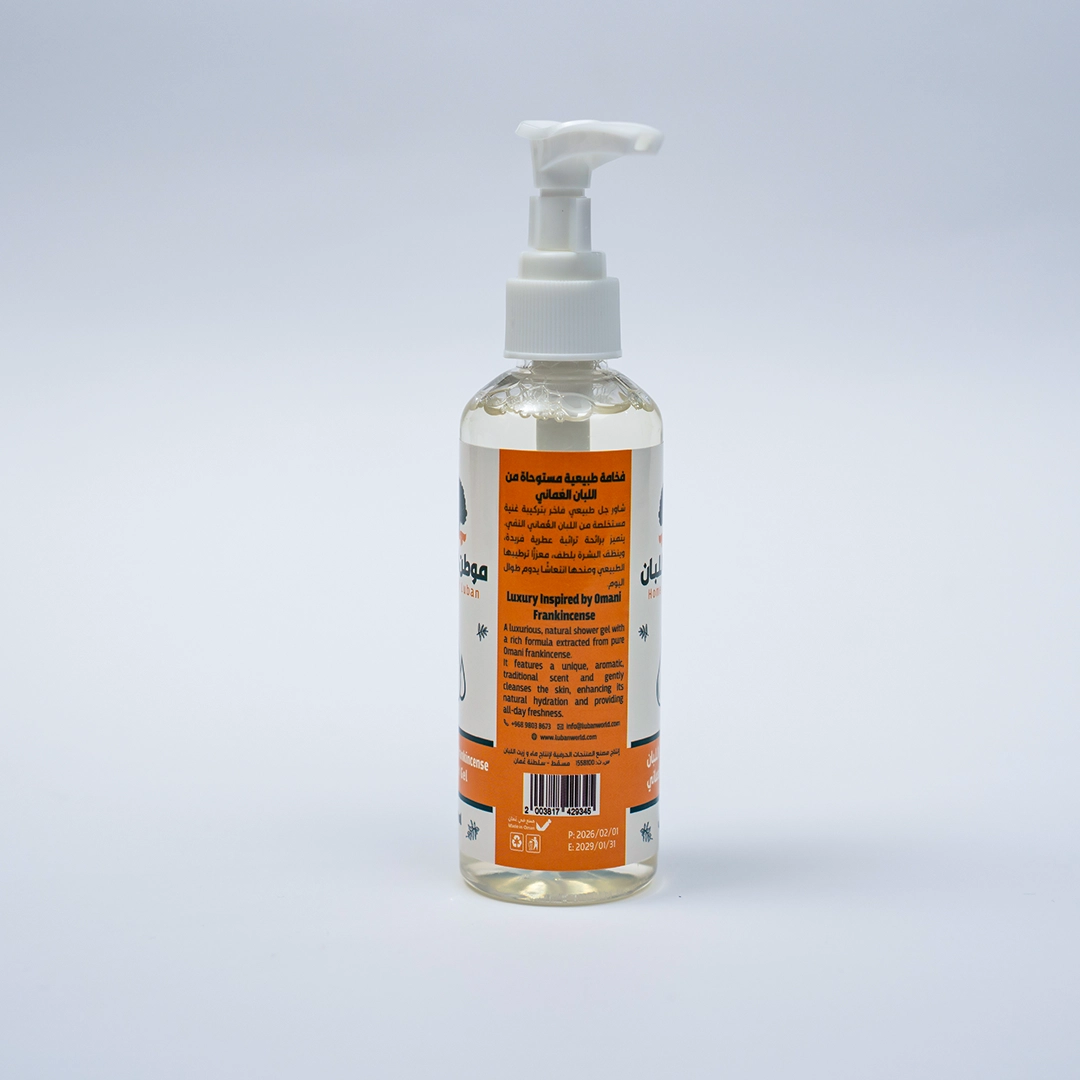 المكونات: مستخلص اللبان العماني الطبيعي + مواد تنظيف وترطيب لطيفة وآمنة على البشرة