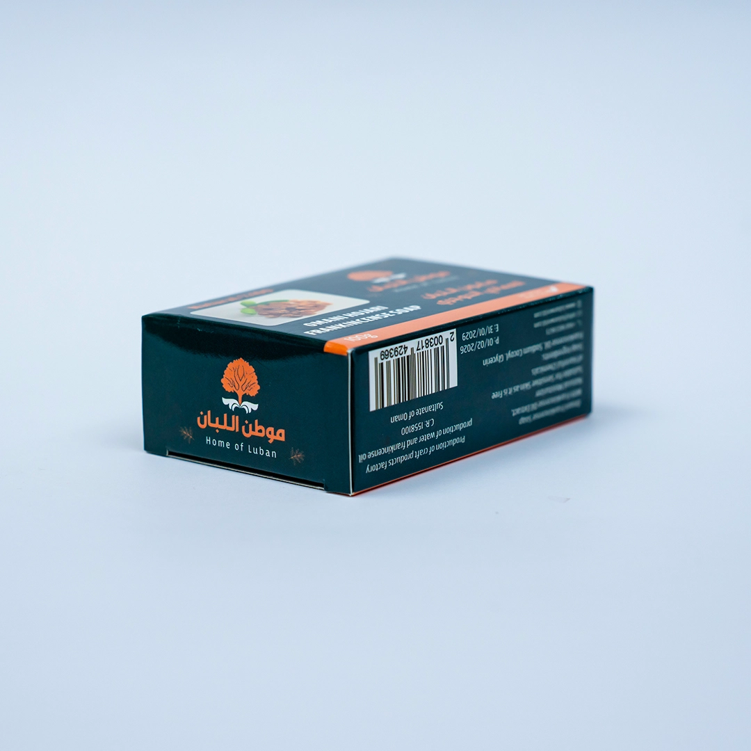 صابون اللبان يعتمد على قاعدة صابون تقليدية مع مستخلص اللبان أو إضافة زيت. تنظيف يومي للجسم والوجه، رائحة طبيعية هادئة وإحساس نظافة عميقة.