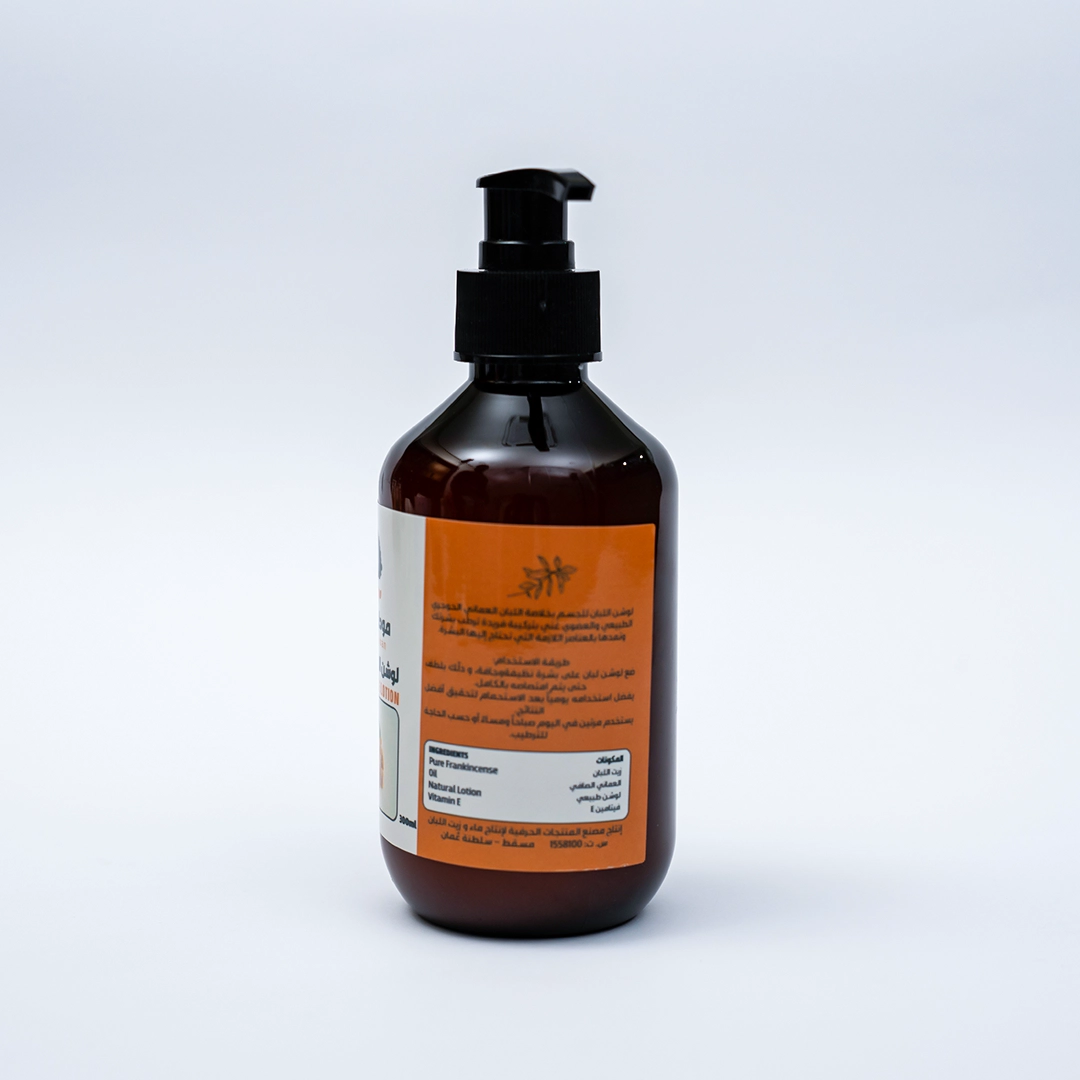 لوشن اللبان للجسم بخلاصة اللبان العماني الحوجري الطبيعي والعضوي، بتركيبة غنية وفريدة تساعد على ترطيب البشرة وتمدها بالعناصر اللازمة التي تحتاج إليها.